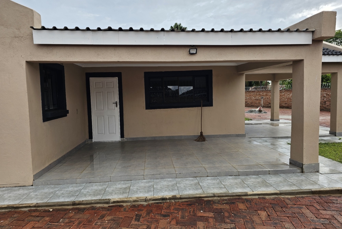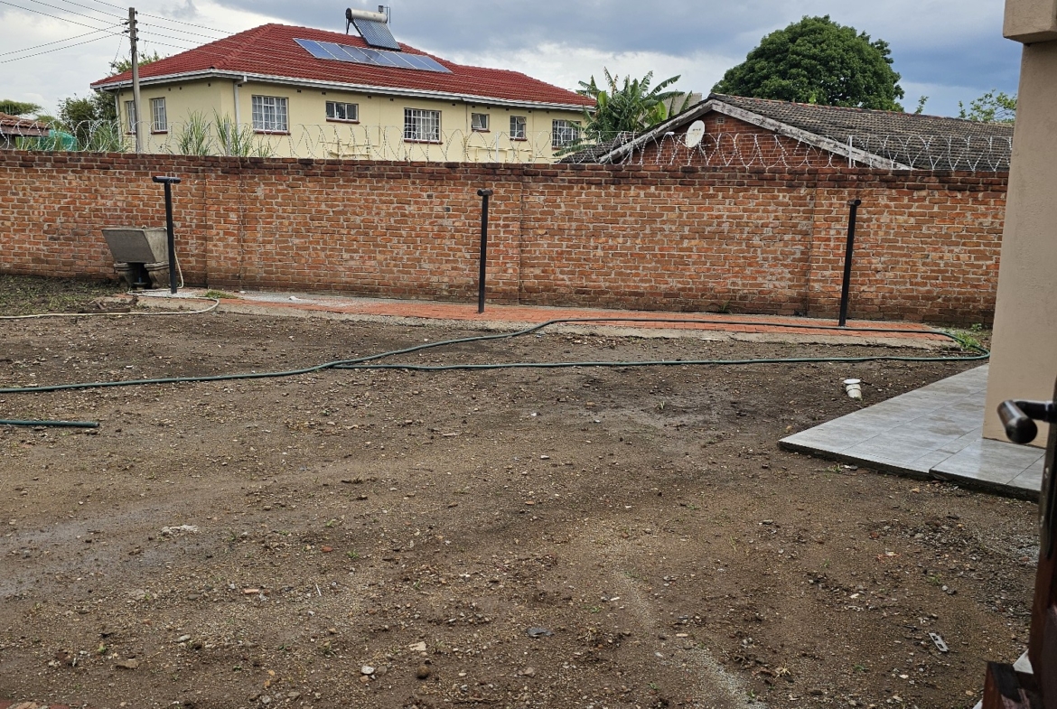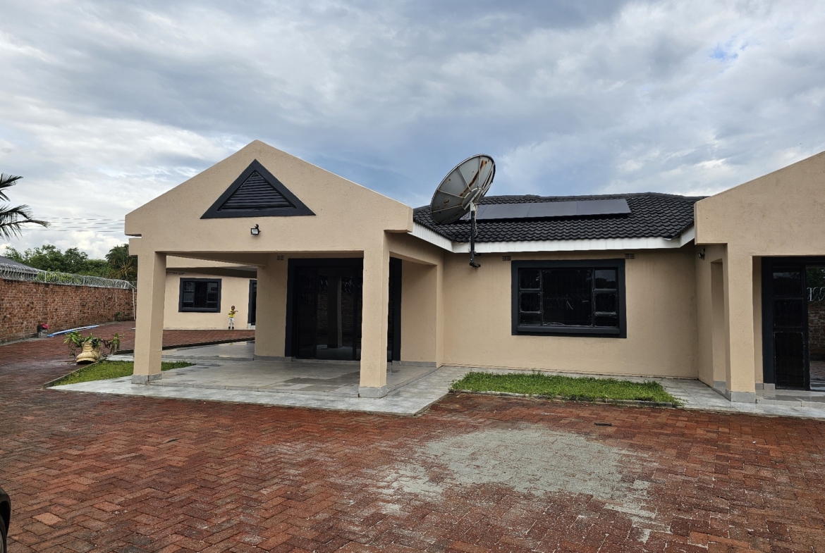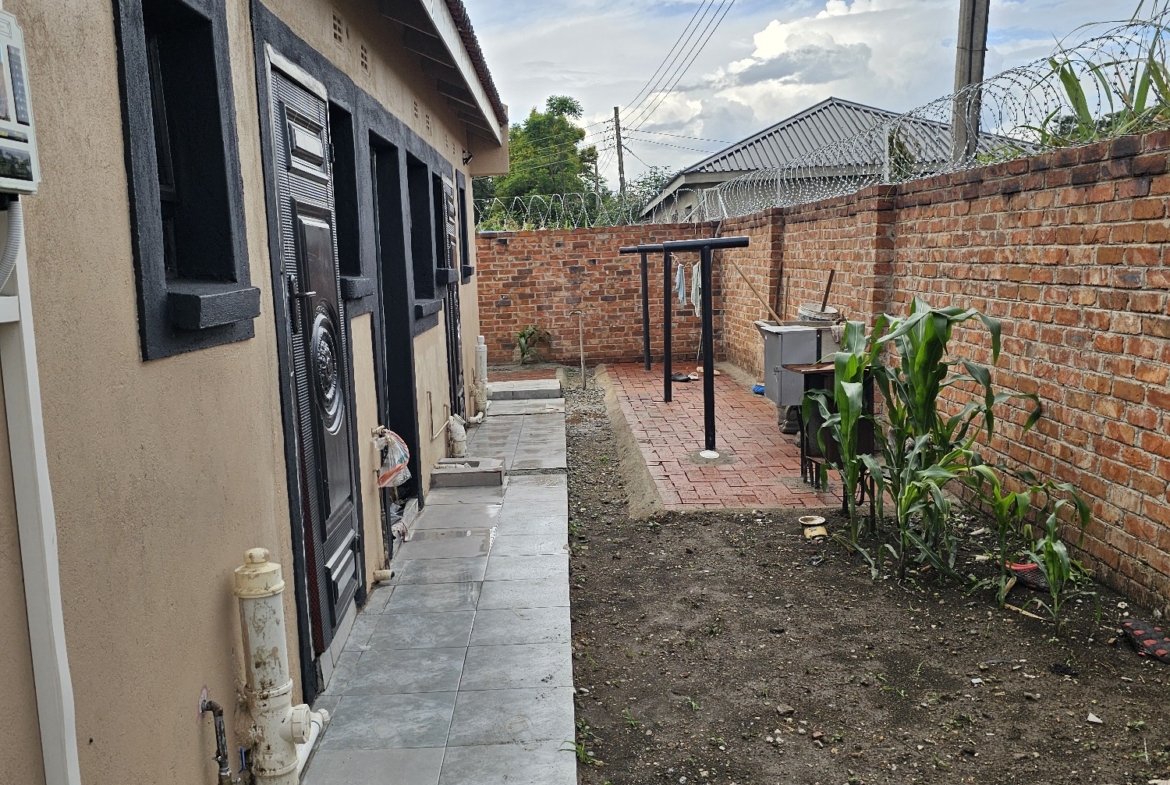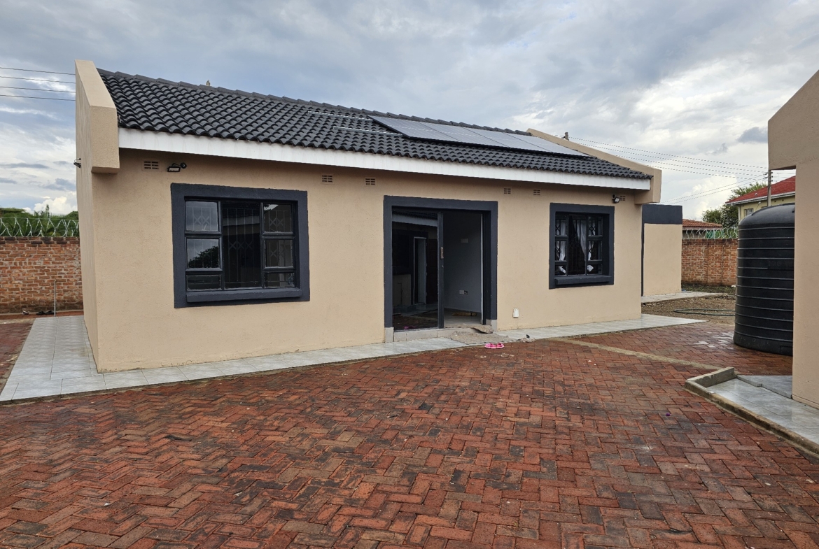Solid 3 bed home sitting on 1000sqm. Ensuite, common bathroom and toilet, dining, lounge, modern fitted kitchen with fitted stove,ceiling bic,tank,borehole, razor wire,5kv solar system.