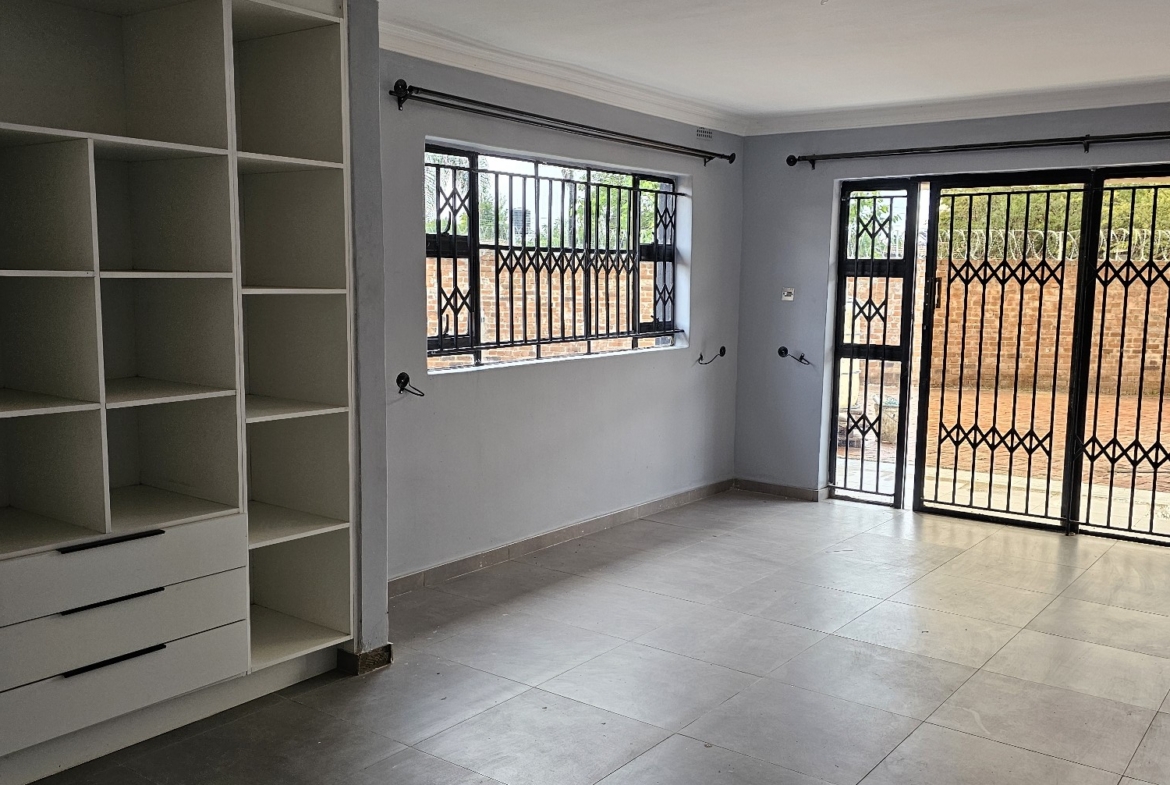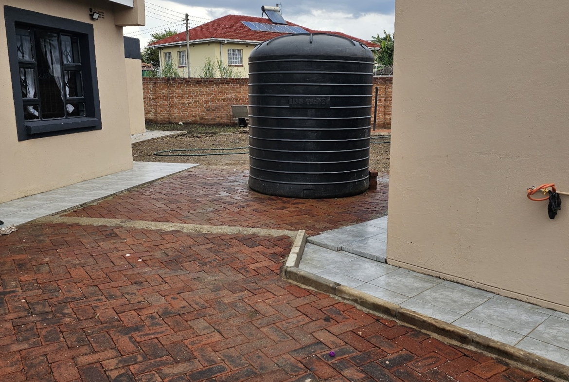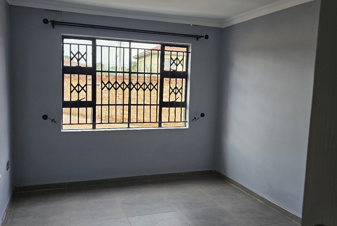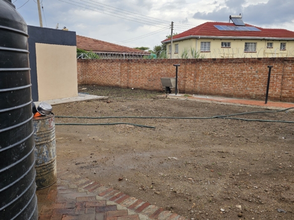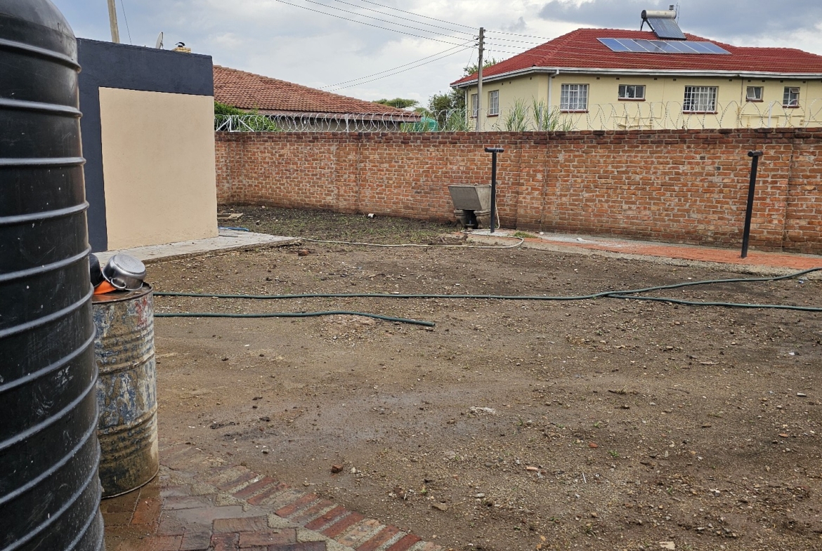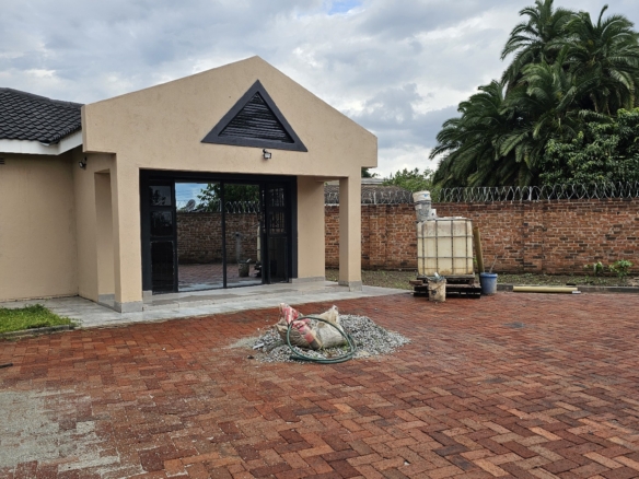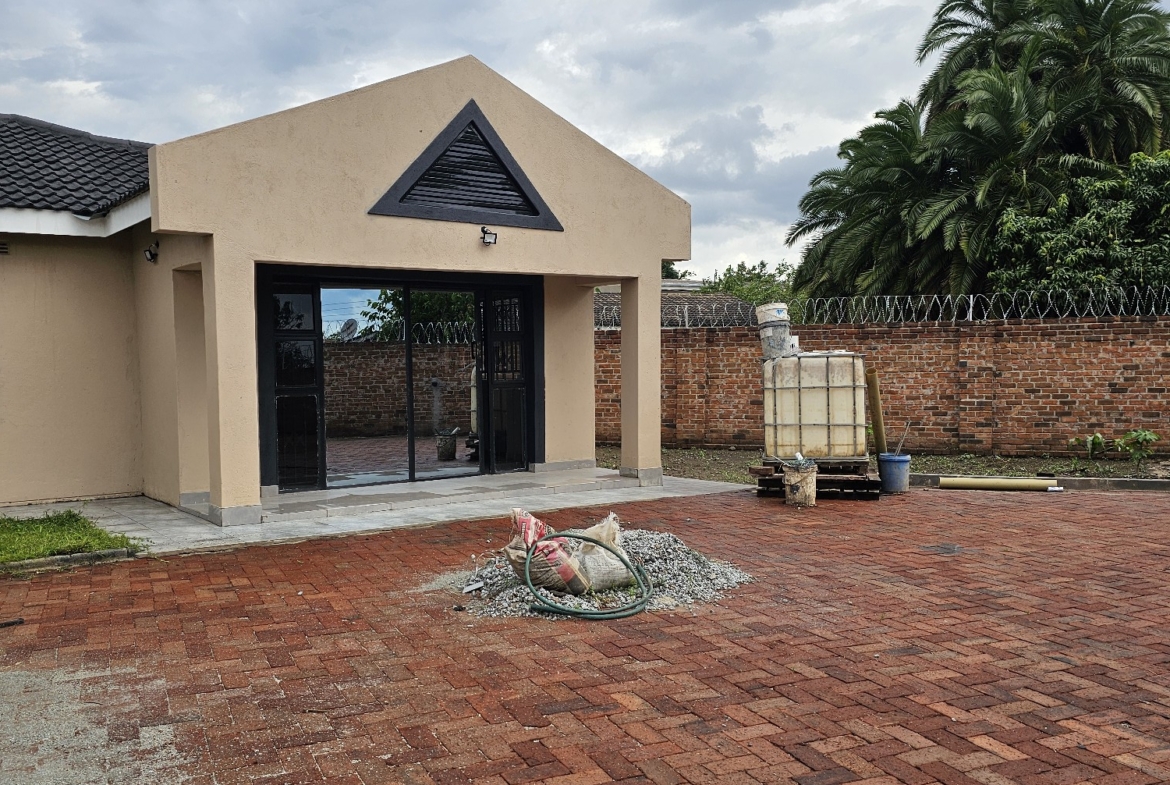 Solid 3 bed home sitting on 1000sqm. Ensuite, common bathroom and toilet, dining, lounge, modern fitted kitchen with fitted stove,ceiling bic,tank,borehole, razor wire,5kv solar system.