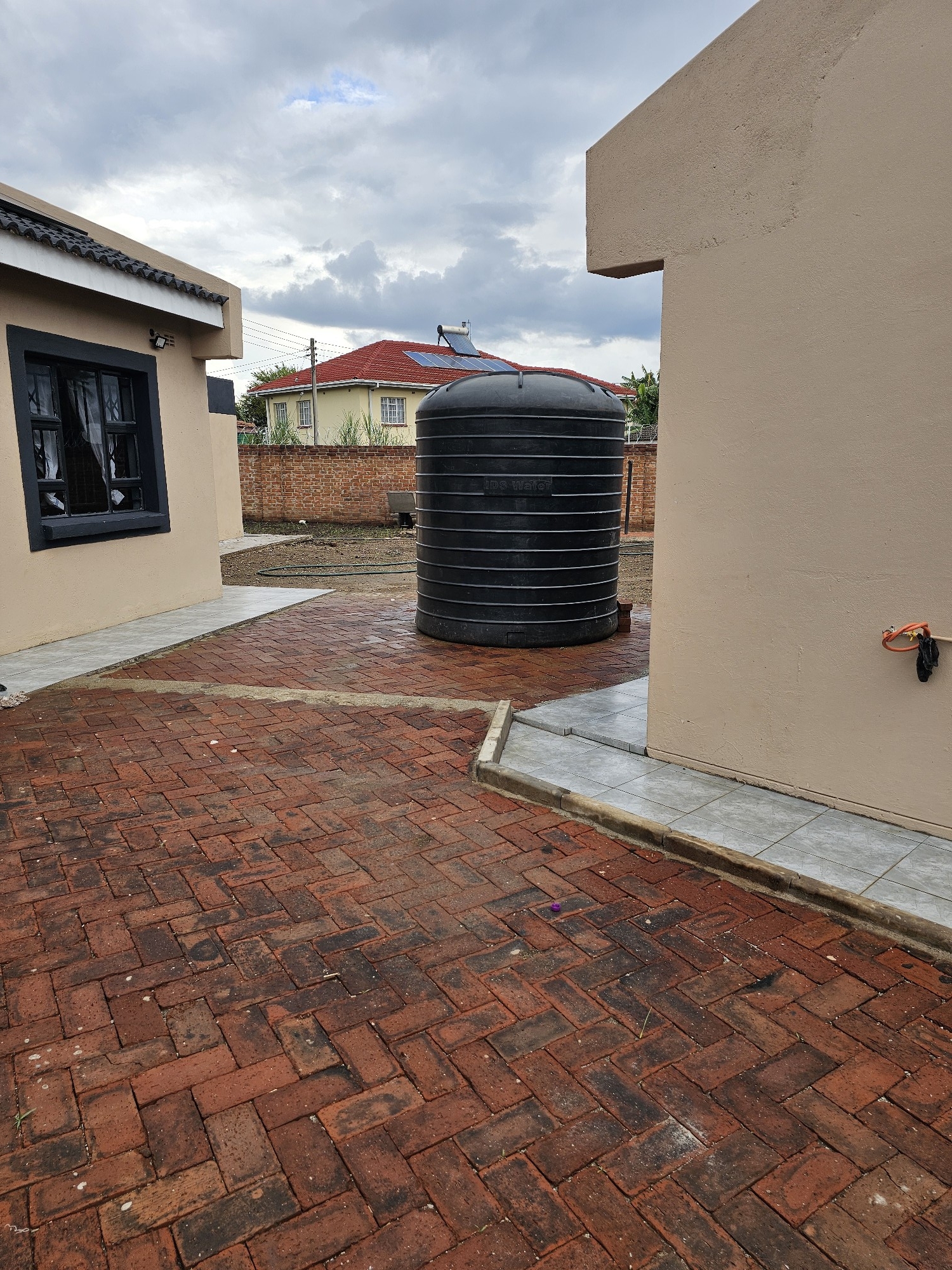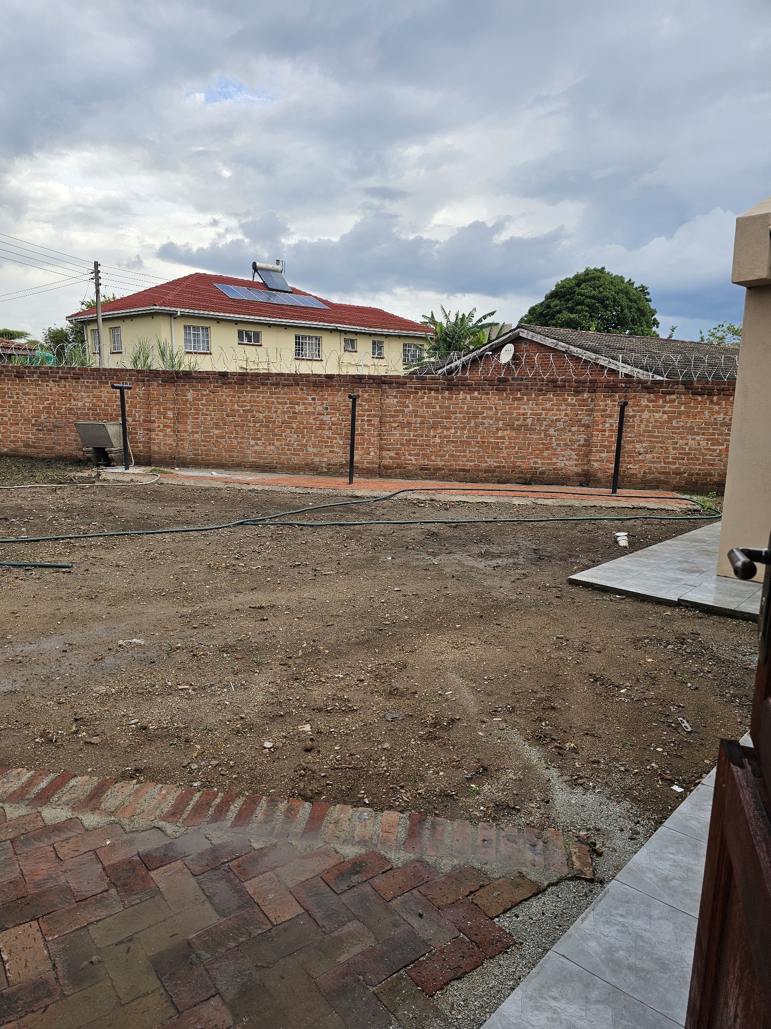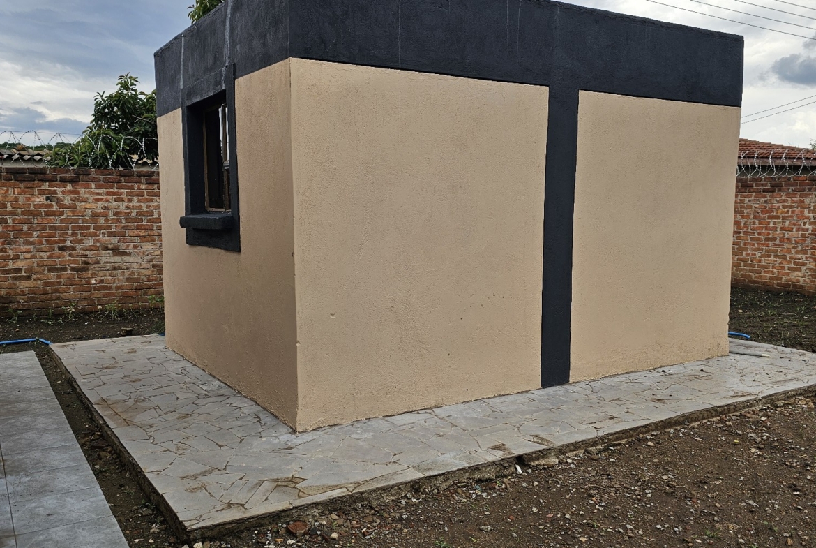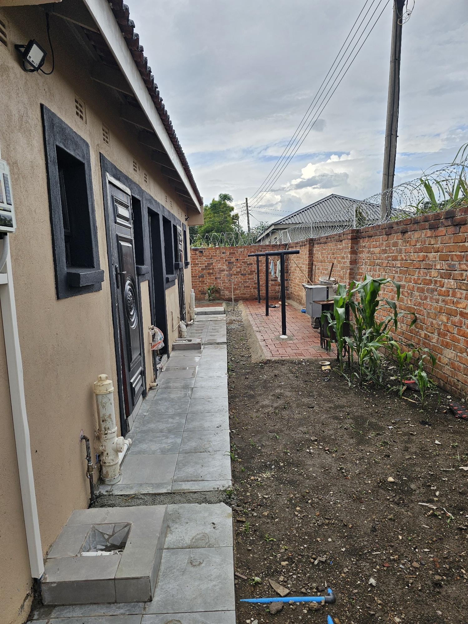 Solid 3 bed home sitting on 1000sqm. Ensuite, common bathroom and toilet, dining, lounge, modern fitted kitchen with fitted stove,ceiling bic,tank,borehole, razor wire,5kv solar system.