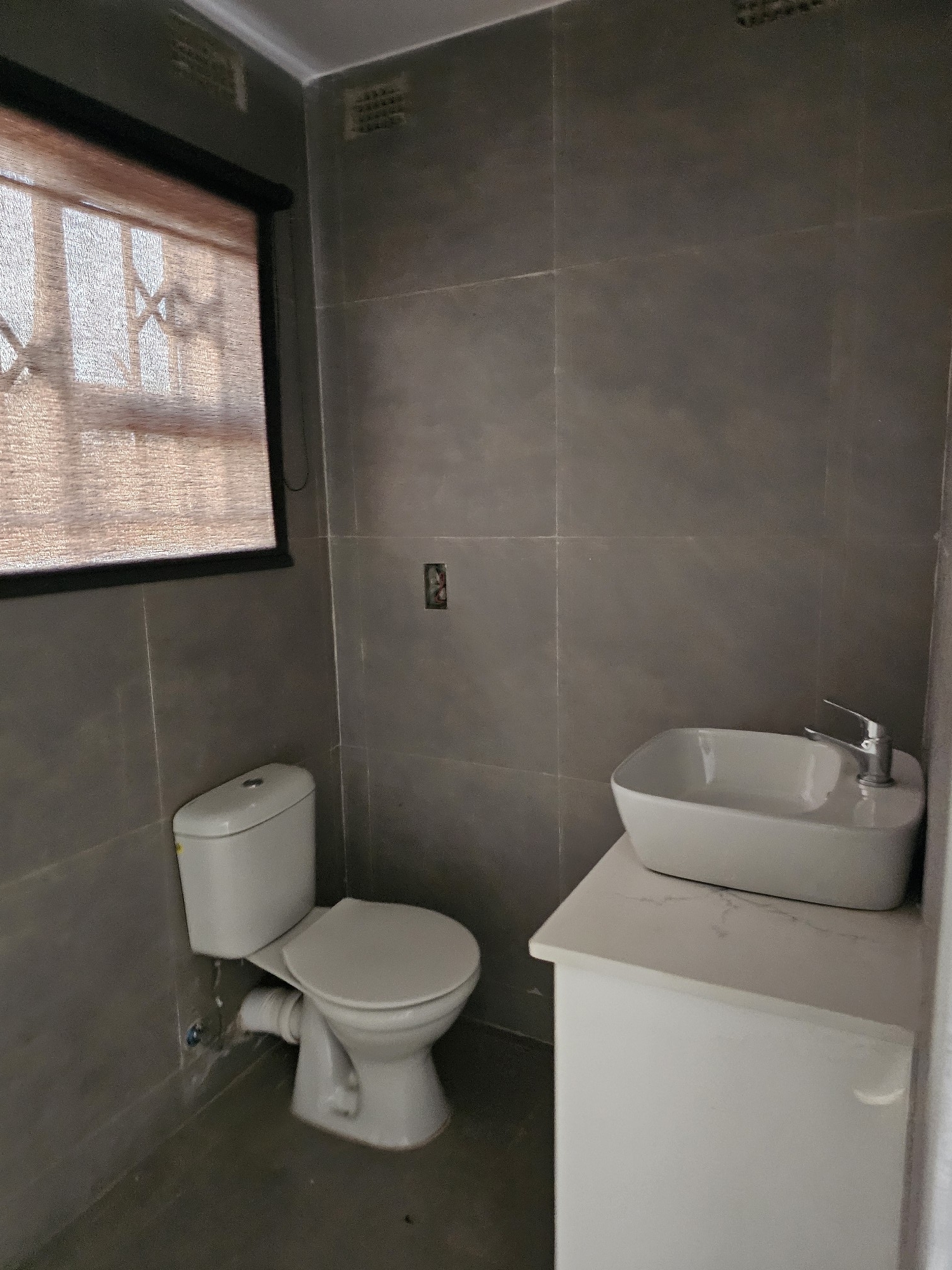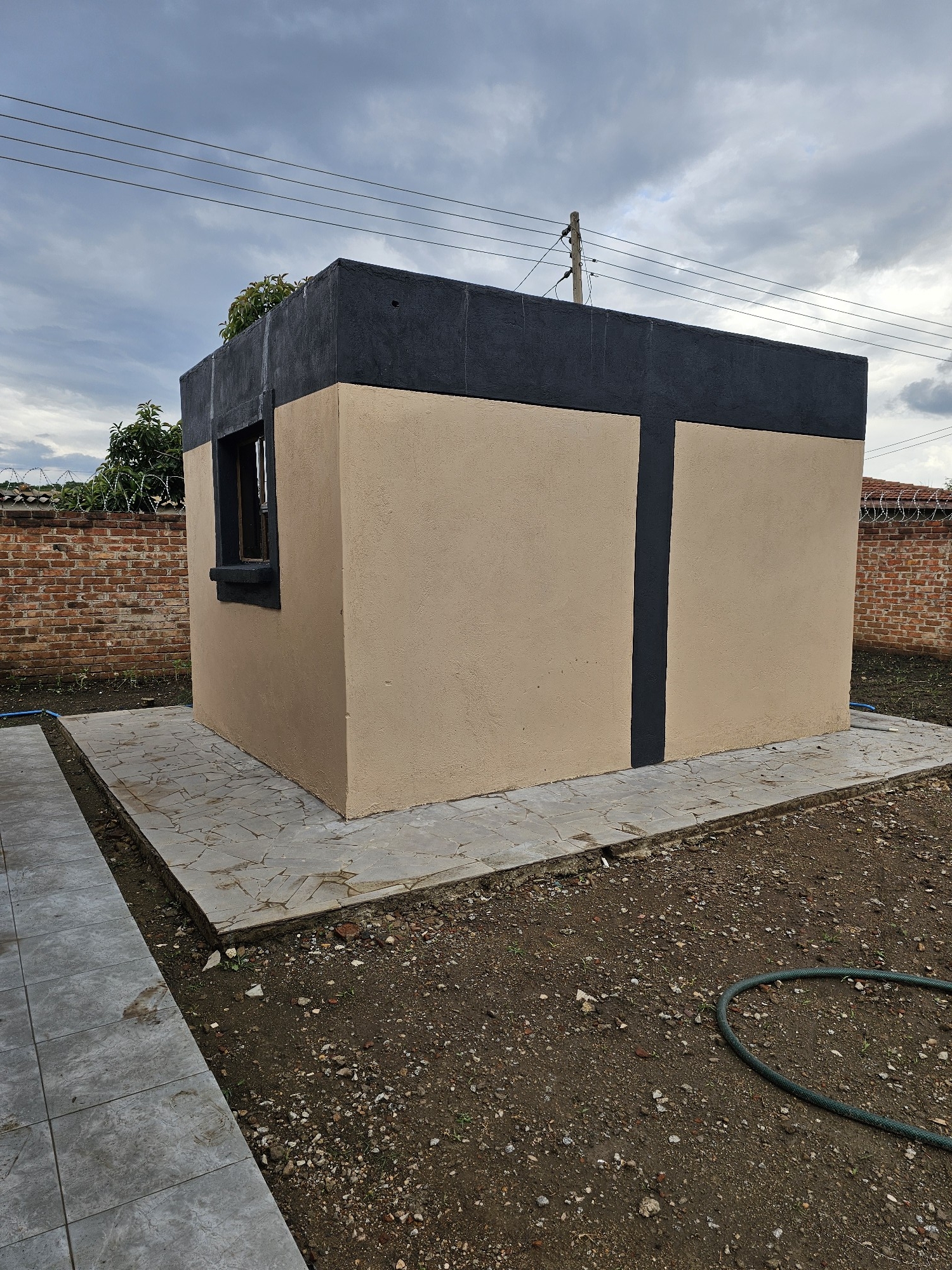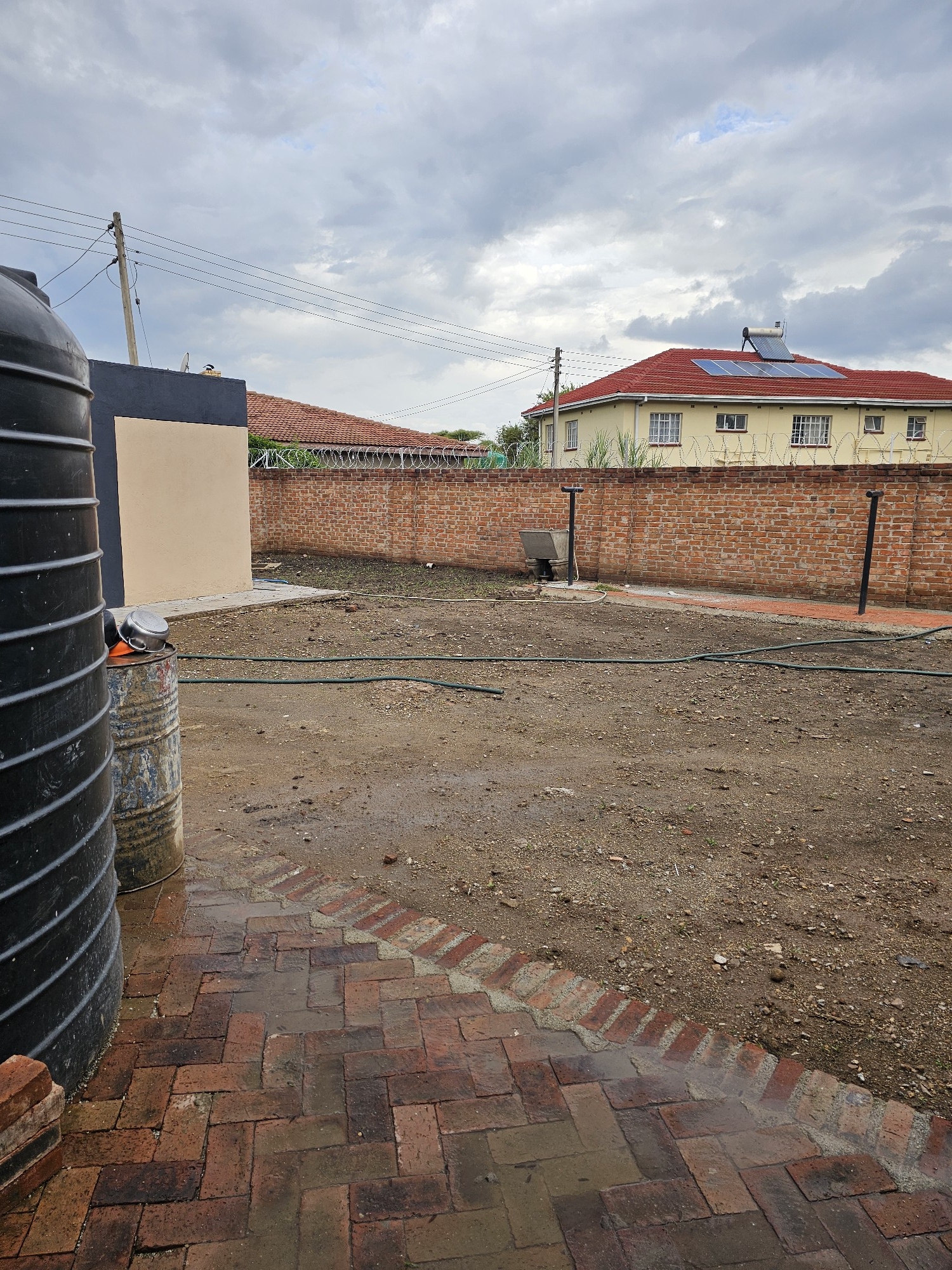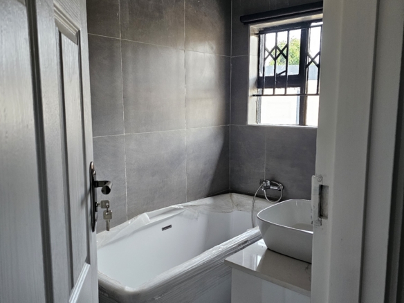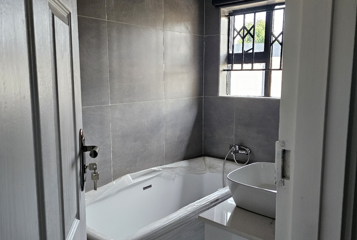 Solid 3 bed home sitting on 1000sqm. Ensuite, common bathroom and toilet, dining, lounge, modern fitted kitchen with fitted stove,ceiling bic,tank,borehole, razor wire,5kv solar system.
