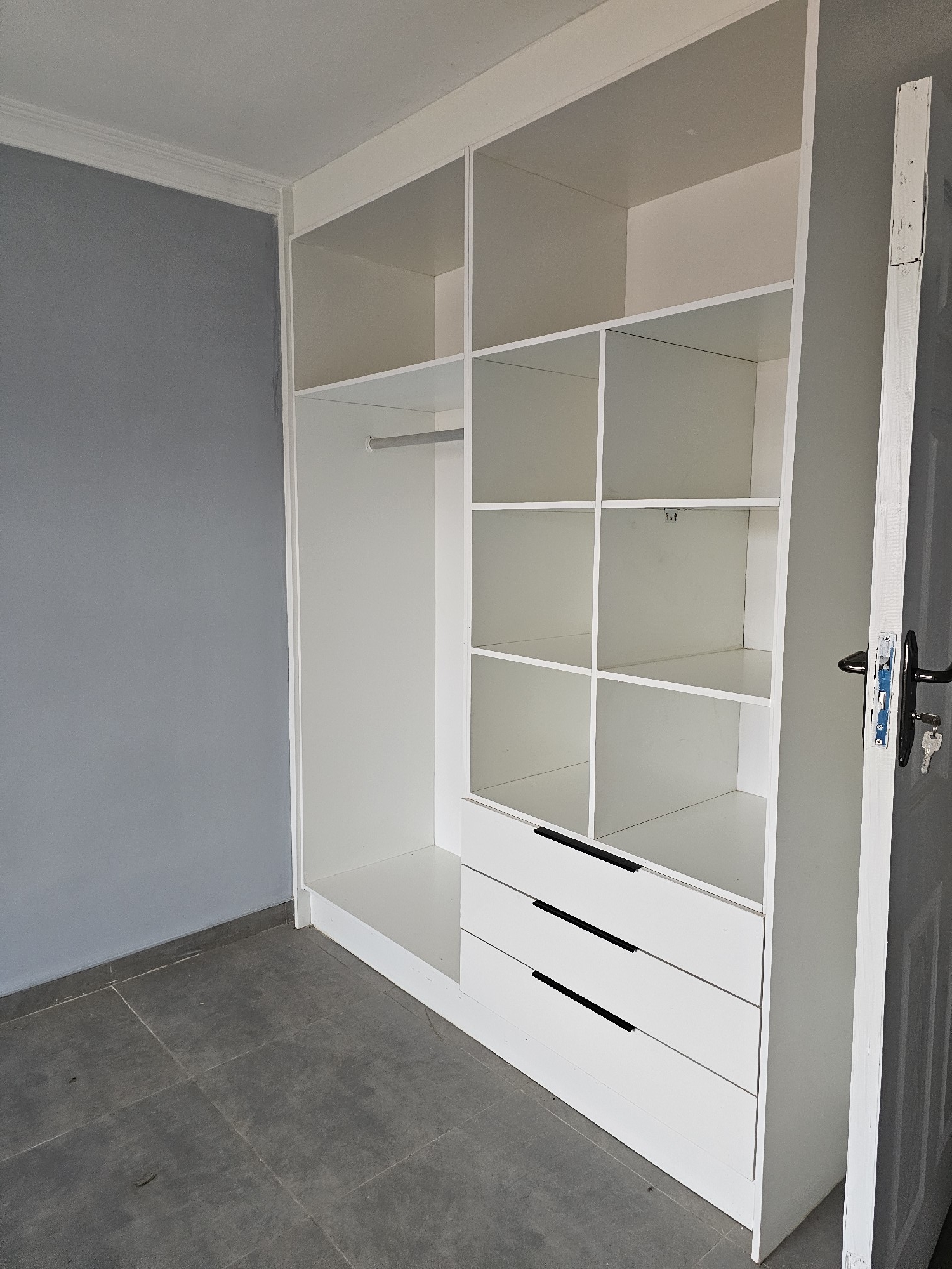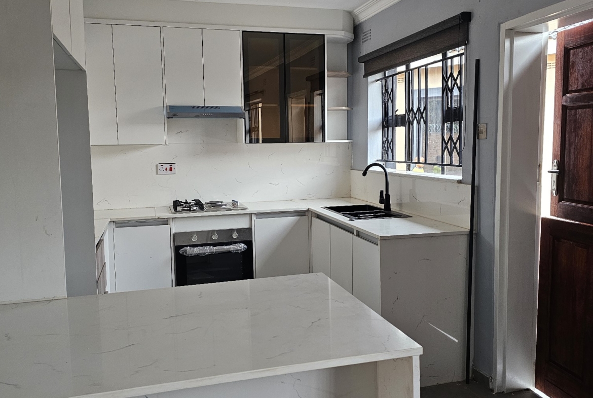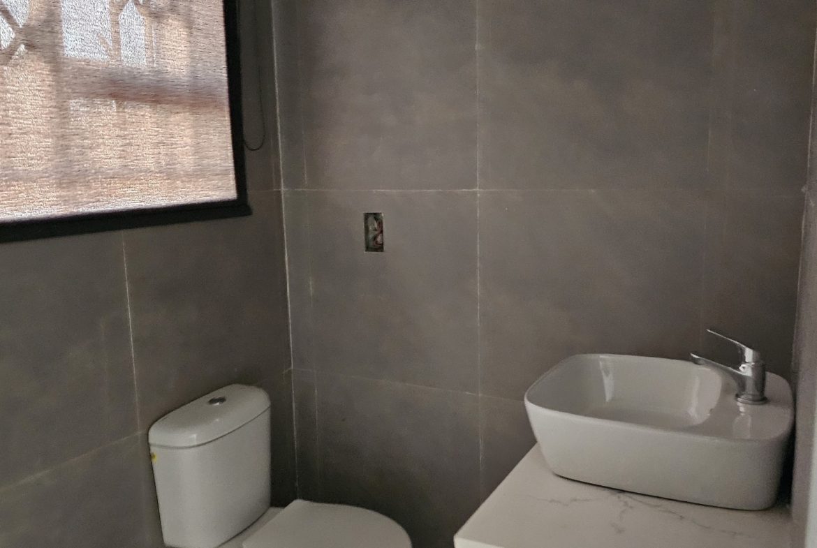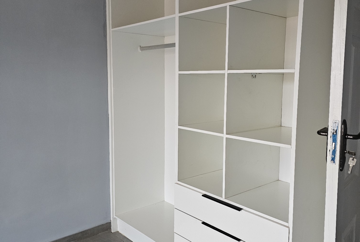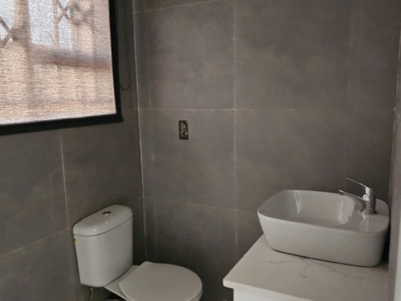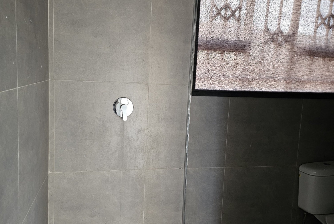 4 rooms, modern fitted kitchen, fitted stove, lounge, common bathroom and toilet, ceiling, storeroom. Walled and electric gate. DEED